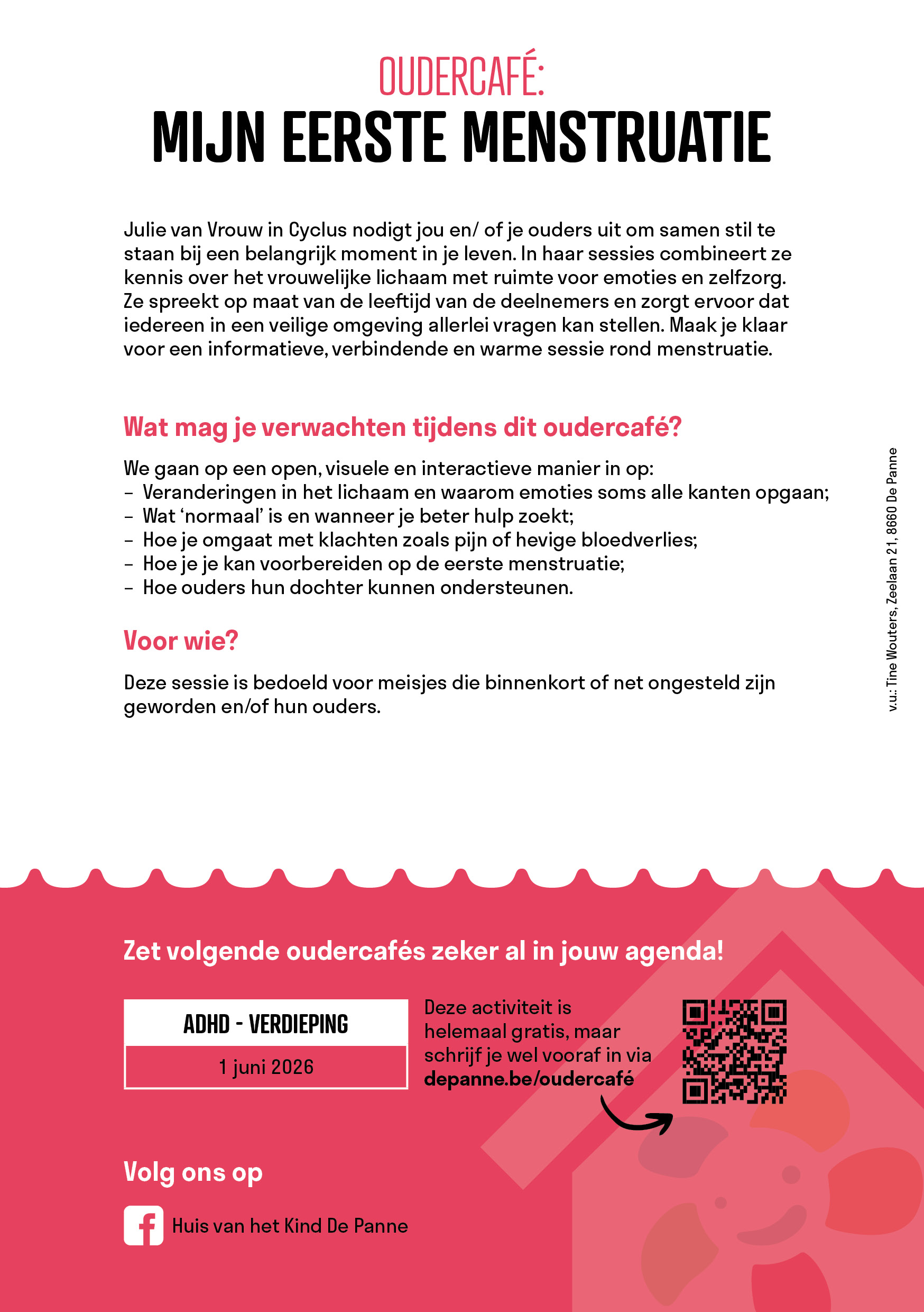De Panne Folder Huis van het Kind Folder Spelotheek Flyer 'Open huis' Huis van het Kind oudercafé - Help! Wat eet mijn kind? Huis van het Kind oudercafé - Gamen en schermtijd Huis van het Kind oudercafé - Help! Wat eet mijn kind? Inschrijvingslink Met het Huis van het Kind naar de Efteling Met de SWAP naar de Efteling Infokaart Huis van het Kind Winterverhaal: 'Een droom van een orka' Oudercafé over autisme inschrijvingslink Oudercafé over autisme: Wat mag je verwachten? Ko de kreeft op krokusvakantie: creatief verhaal in Duinpanne Oudercafé: Mijn eerste menstruatie Oudercafé: Mijn eerste menstruatie De Speelplaneet in het Huis van het Kind Buitenbeentjes in Duinpanne Lezing: Laat je geen ha(c)k zetten